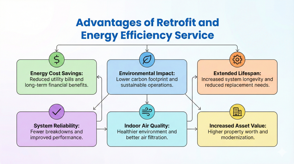 Retrofit and energy efficiency service is an effective way to enhance system reliability, reduce energy costs, and create comfortable, sustainable indoor environments without major capital investment.