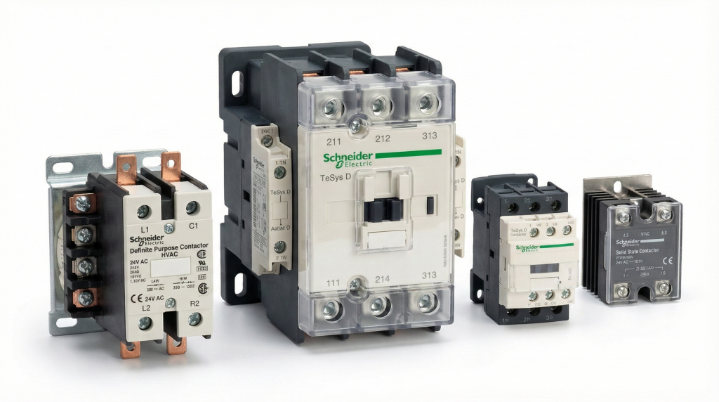 Contactors are essential electrical switching devices used to control high-power HVAC equipment. They ensure safe and efficient operation by managing the on-off switching of motors, compressors, and other electrical loads.